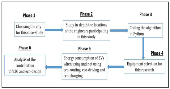 This section is organized as follows. Section 2.1 describes the method used in this study. Section 2.2 explains the trips made as well as the number of engineers chosen for this study. Section 2.3 displays the equipment employed. Section 2.4 describes the algorithm implementation. Section 2.5 displays the method used to analyze data statistically. Section 2.6 briefly introduces the concept of V2G. Section 2.7 analyzes the main topics linked to cybersecurity.