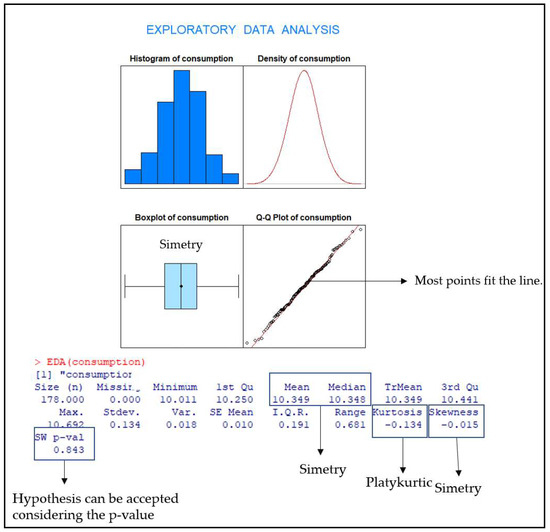 As detailed in the result section, the data obtained in this research seem to be close to a normal distribution. Consequently, a method must be set to confirm this assumption. To do this, the package named PASSWR belonging to the R software was used. This package includes commands such as EDA which provide a lot of information to perform exploratory data analysis such as kurtosis, skewness and p-value. Kurtosis is a statistical measure that defines how heavily the tails of distribution differ from the tails of a normal distribution. Therefore, kurtosis identifies whether the tails of a given distribution contain extreme values. For a normal distribution, its value is 3. There are three types of kurtosis: mesokurtic when kurtosis is close to 3; leptokurtic when values are quite higher than 3; and platykurtic when the extreme values are less than the normal distribution. Skewness essentially measures the symmetry of the distribution. For a normal distribution, its value should be close to 0. At this point, it is important to highlight that symmetry does not imply that the data correspond to a normal distribution. Thus, these two parameters must be analyzed carefully. Finally, the p-value or probability value is the probability of obtaining test results at least as extreme as the results actually observed during the test, assuming that the null hypothesis is correct.