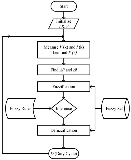 Fuzzy logic maximum power point tracking (MPPT) flow chart.