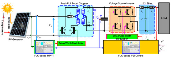 Schematic of the proposed control architecture of the studied system. VSI, voltage source inverter; FLC, fuzzy logic controller.