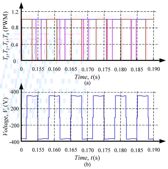 Output: (a) Inverter fuzzy logic PWM; (b) output voltage before filter.