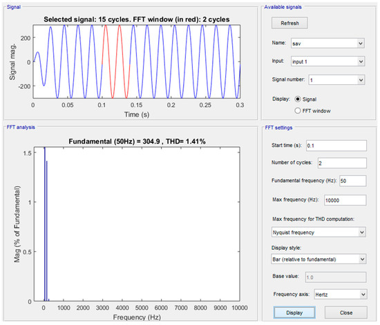 Fast Fourier transform (FFT) analysis of output voltage. THD, total harmonic distortion.