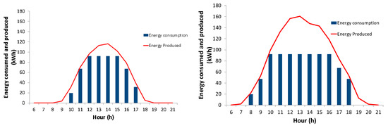 With these data, we calculated the economic energy consumption (Table 4). The Case I savings coincided with Case 0 consumption (the utility does not pay for electricity). Case II savings were lower than in Case I as they considered the electricity taken from electricity grids in comparison with the Case 0 use. In short, Case II (18 × 12 = 216 modules) involves savings in January of 1512.32–292.54 = 1219.78 EUR.
