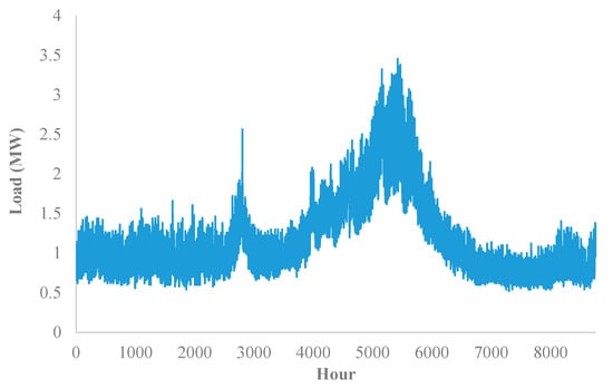 In order to observe the potential benefits that can arise by managing the desalination system’s demand, the load for the year 2019 in the island of Kythnos is taken into account, as depicted in Figure 3. It is evident that significant variations are observed in the system load during the year. In particular, the tourism activity in the summer months significantly increases the system load, introducing a peak of 3.42 MW. A peak of 2.56 MW is also noted during April, denoting the Easter vacations in Greece when an increased tourism activity is observed.