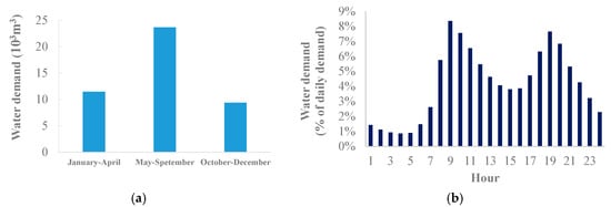 (a) Water demand in Merichas for each period of the year and (b) distribution of the water demand during the day [21].
