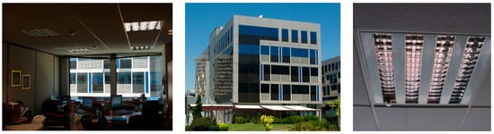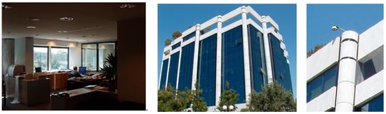 Three office buildings located in Athens, Greece, were selected. In all buildings, a daylight-harvesting system was installed. Building A (Figure 2) is a 2-storey office building of the tertiary sector in an open plan area. On the first floor there are open plan offices, while on the second floor there are closed office spaces. POE was performed in both floors. Building B (Figure 3) is an 8-storey office building. The sky view to the north is partially obstructed by a three-storey building. The users are located mainly in the perimeter of an open plan space. POE was performed on the 3rd and 4th floor. Building C (Figure 4) is a 4-storey office building. The sky view to the north and south is partially obstructed by two similar height buildings. Floors 2 and 3 were selected for this study. A detailed description of the lighting system and daylight control is presented in Table 1 for each building. In all buildings, all examined areas were used as offices. In the rest floors the activities were different, thus were not taken into account.