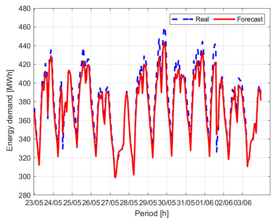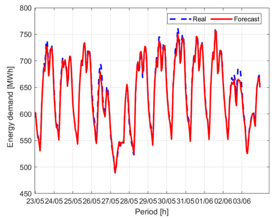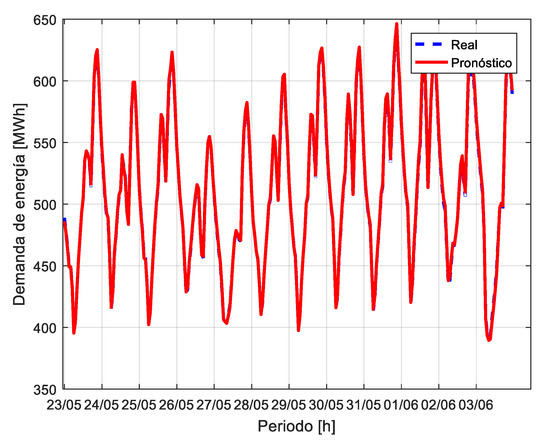 The results of Figure 17, Figure 18, Figure 19, Figure 20 and Figure 21 and Table 4 demonstrate the fulfilment of the proposed objective, since it was possible to achieve a MAPE below 5% for a 10-day forecast for each of the markets. The results show a better performance in comparison with the same demand curves described by the authors of [20].