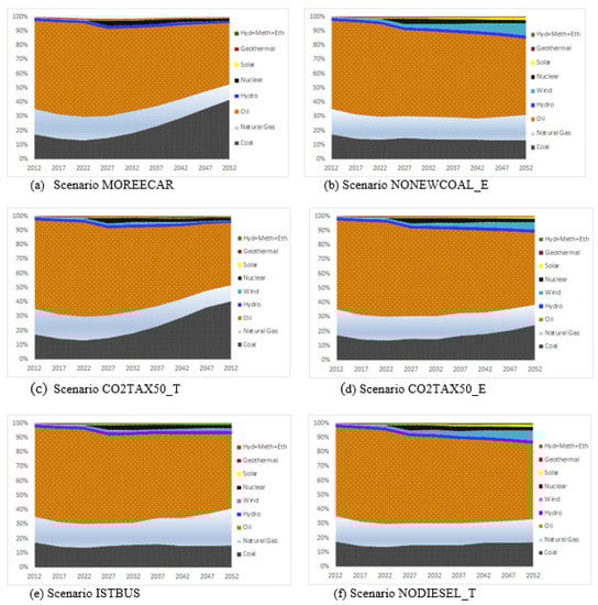 A recent study compares the transport sector in China with that of the USA from a decarbonization perspective by using the Integrated MARKAL-EFOM System (TIMES) model [10]. In the study, decarbonization characteristics and alternatives of transport in China and the USA for future years are modeled by carrying out carbon tax scenarios and analyses. Based on the scenarios and their results, biofuel will reduce the carbon emissions in the near-term, and substitute at least 20% of oil products in China and the USA by 2050. On the other hand, it is expected that electrification will help the decarbonization of the transport sector in the long-term, as long as less carbon-intensive power generation technologies become more economical.