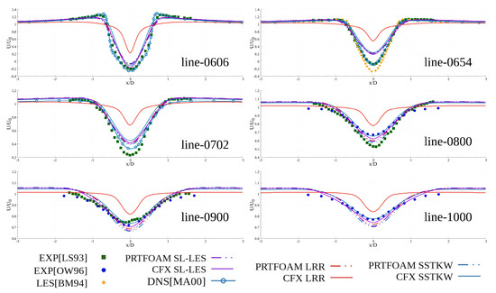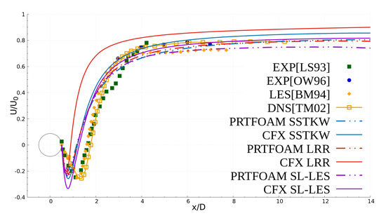 - Lourenco, L.; Shih, C. Characteristics of the plane turbulent near wake of a circular cylinder: A particle image velocity study (private communication), reported by Kravchenko, AG, Moin, P., 2000. Numerical studies of flow over a circular cylinder at ReD = 3900. Phys. Fluids 1993, 12, 403–417. [Google Scholar]