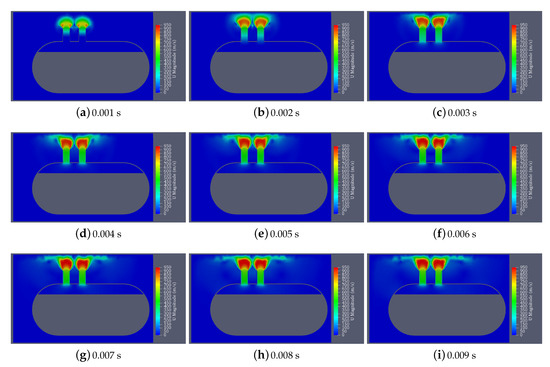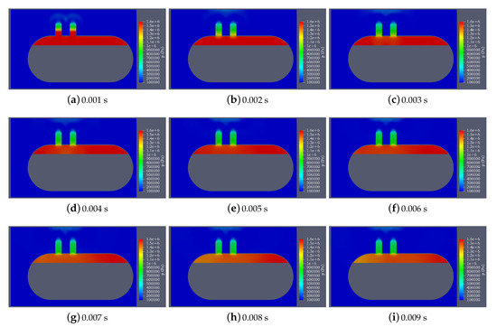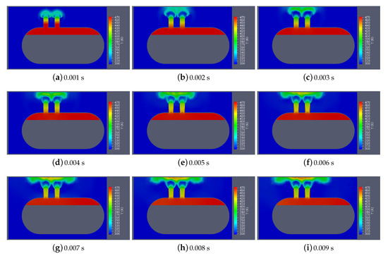 The total simulation time of the case is 0.02 s, the time step is 5 × 10 −7 s, and the flow field physical quantity is saved every 1 × 10 −3 s.