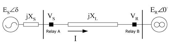 OMIB is shown in Figure 2, in which ES∠δ is a source (generator) voltage, ER∠δ is a voltage of the infinite bus, Vs and VR are voltages which are measured at the relay A and B, respectively, and jXS and jXL are the source and line impedances, respectively.