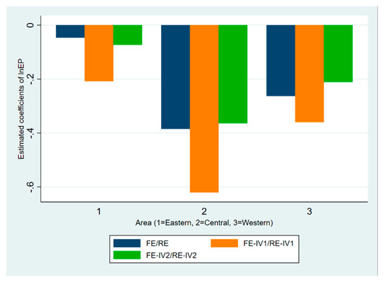 Considering the huge differences in the level of economic and social development as well as the level of energy consumption among different areas in China, the current paper further analyzes the sub-samples including the western area, central area and eastern area, to see whether there are differences in the impact of energy price on energy efficiency for different areas (The area classification is based on the standard of the National Bureau of Statistics of China. For details, please visit [