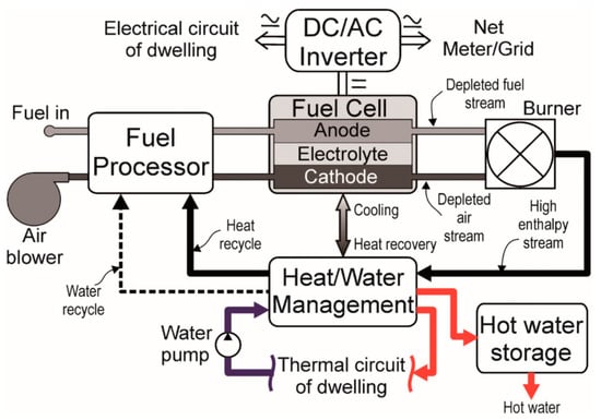 The schematic diagram for fuel cell micro CHP systems [94].