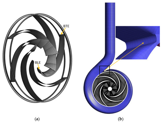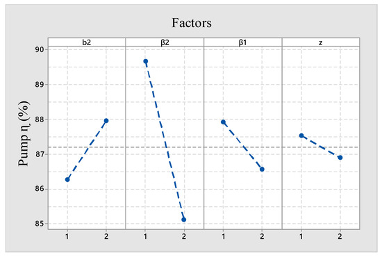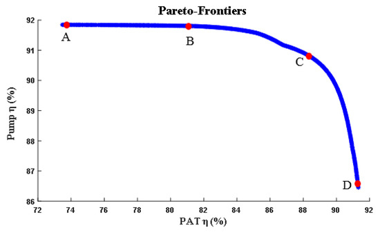 Since the pump is not perfectly designed to work in reverse mode, the optimization based on the PAT flow zone is required to improve the hydraulic machine performance. Furthermore, it should also be noted that the change of rotional speed of the pump under PAT mode can have significant influences on output performances of the machinery by comparison to the original pump mode since the best efficiency point of the pump and PAT mode may have a large discrepancy. However, there has been little research that focused on PAT optimization. Yang et al. [30] demonstrated that it would be more effective if the blade inlet angle value is within the range of 25–35° to ensure good performance. Derakhshan et al. [21,31] put forward a theoretical analysis to modify the geometry of the impeller and showed that it does directly affect the overall performance of the PAT. Furthermore, is highly expensive and time-consuming in pump design and optimization based on trial-and-error approach [32]. The combination of an optimization approach with CFD numerical simulation can, however, reduce the sequence of development and also reduce computational and experimental resources for performance enhancement.