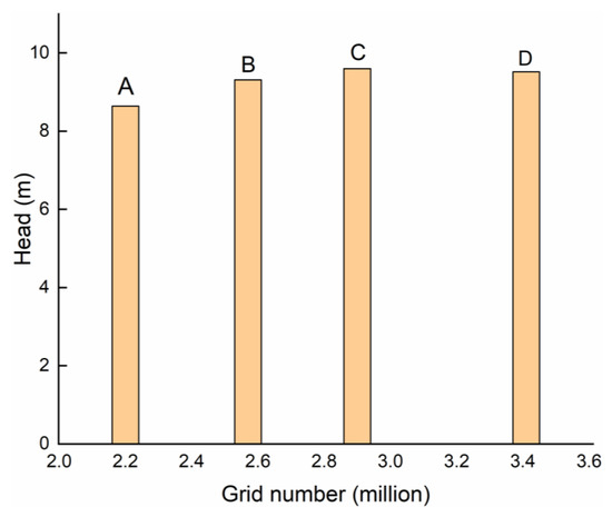 where ρ (kgm−3) is the density of the fluid, g (ms−s) is the gravitational acceleration, Q (m3h−1) is the flow rate, HP (m) is the actual head loss under pump mode, ΔPdf (W) is the disk friction power loss, ΔPlk (W) is the leakage power loss, ΔPrec (W) is the recirculation power loss and Hth,p (m) is the theoretical head in pump mode.
