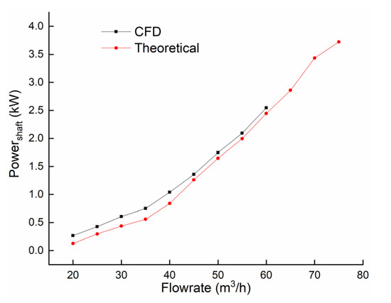 When calculating the shaft power demand, the disk friction power is divided by the flow rate and the pressure head, which is added to the theoretical head. [43] formulated the disk friction loss as expressed in Equation (19), which is applicable in both pump and PAT operations.