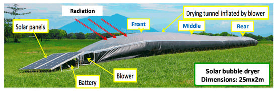 - Salvatierra-Rojas, A.; Nagle, M.; Gummert, M.; Bruin, T.; Müller, J. Development of an inflatable solar dryer for improved postharvest handling of paddy rice in humid climates. Int. J. Agric. Biol. Eng. 2017, 10, 269–282. [Google Scholar] [CrossRef]
