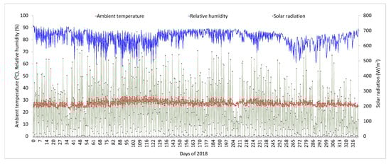 | Time of operation per year | day year−1 | 200 | Assumed (considering the climate data shown in Figure 2) |