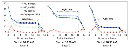 | Drying rate (reduction of MC per hour) | % h−1 | Calculation based on the drying curve |