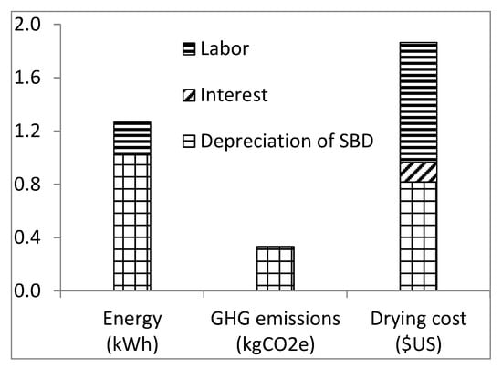 | Drying cost | $US kg−1 | Including depreciation, maintenance, interest, and labor cost (no energy cost for SBD). |