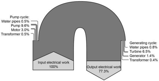 An exemplary overview of the energy losses and the resulting efficiency of PHS is provided in Figure 1.