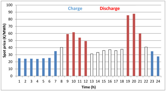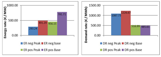 Table 5 gives representative parameters for the day-ahead spot market and the secondary reserve market. The parameters are derived from the analysis presented in Section 3.4.2 and Section 3.4.3 below.