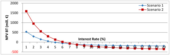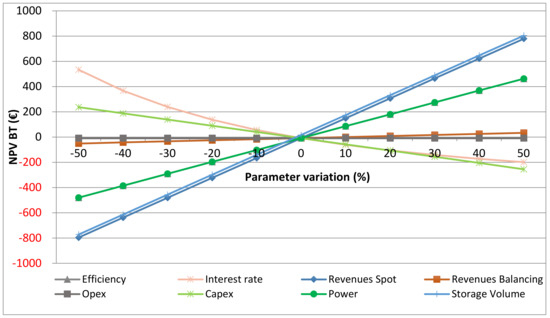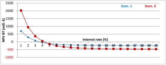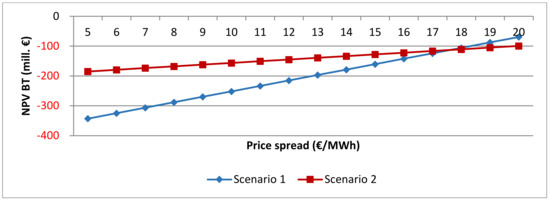 Calculations of the economic feasibility of a PHS plant are made with the help of the net present value (NPV) method. The NPV computes the overall value of benefits and costs of the project by summing up all time-discounted net revenues (i.e., costs and revenues ) at different points in time and comparing them with the investment at time t = 0 as the initial cost outlay [39]: