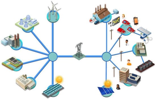 The localization (nodal) market boils down to a market where there is practically no exchange and transactions are managed by the Operator through a mechanism that is something like an auction where individual suppliers submit their offers taking into account current prices, costs of future investments and the place of energy supply and consumption, i.e., nodal costs [88]. Nodal markets exist in US, Australia, New Zealand and the experience from mentioned countries with node prices offer a wide range of opportunities to meet the emerging challenges on the market and thus can easily facilitate further integration of intermittent renewable generation technologies [87,89]. The principals of nodal pricing can be implemented in different ways: (a) full nodal pricing, i.e., both generators and the demand side are exposed to nodal prices like in case of New Zealand and US (Pennsylvania, New Jersey, Maryland) [90] or mixed like in case of Australia e.g., price changed into a weighted average of the nodal prices in a region, rather than being the price at a single node in the region, and nodally dispatched but zonally settled [90,91]. The dynamic development of distributed generation, including renewable energies sources (RESs) connected to the distribution network, will have a significant impact on the role and functioning of distribution system operators (DSOs) [74]. The development of small generating units in the field of power generation will allow the active participation of the final customer (end users) connected even to the low voltage network. The transition to new market model is leading to a new role for citizens, from passive energy consumers to active energy citizens—prosumers [92]. The end-user will be a key player in future electricity markets [67,93,94]. This means that dwellers are able to produce and feed electrical power into the grid thus obtaining the status of an energy producer and reducing the load on the national power grid system [95]. Distributed energy represented by prosumers has the potential to shape overall demand and offer significant value to the energy system, inter alia by reducing investment needs in additional generation and transmission infrastructure. However, it should be remembered that the appropriate motivation of prosumers to coordinate their locally owned dispersed resources belongs to the representatives of the energy system and is very often a challenge and at the same time a field for conducting active research in Smart Grids [96]. Settlement of a numerous of individual transactions on the energy market can be carried out via blockchain called as distributed ledger technologies. Blockchain can clearly benefit operations in the energy system, the energy market and consumers. Blockchain offers transparency of executed operations and conducting transactions resistant to manipulation or speculation. Most importantly, however, blockchain offers innovative solutions that enable consumers, end-users and small renewable energy producers to play a more active role in the energy market and maintain liquidity by easily selling their assets [51,97]. In a blockchain system, consumers and prosumers exchange energy directly in a decentralized manner through well-designed smart contracts with minimal intervention by intermediaries (energy companies) [67]. A dynamic power system as the basis of an interconnected grid that makes the best use of local grid energy production with distributed generation resources, smart appliances, and other equipment and intelligent devices is shown in the Figure 5.