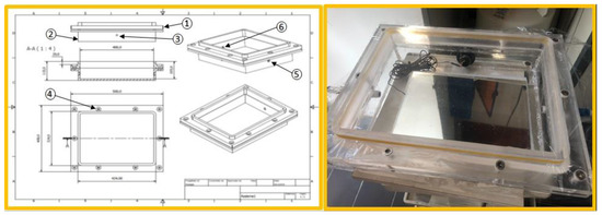 The prototype has a 300 × 200 mm exposed area and it consists of the following parts, as indicated in the left scheme in Figure 1: