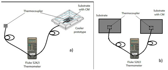 Thermocouple (a) and thermocamera (b) reading temperature comparison.