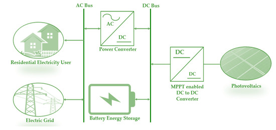 In general, the conventional electric grid is a centralized system that connects the power output from many fossil and non-fossil fuel-based power plants to one and transmits the power steadily to electricity users. The most commonly seen electricity users are residential ones. The electric grid (EG) transmits power from remote areas (where the power plants are located) over a long distance to the residential electricity demand centers. This allows power flow only in one direction from high voltage to a low voltage level, and then it is distributed to the electricity consumers, who are typically called residential electricity users (REUs), but in today’s trend, the role of renewable energy (RE) has become very crucial in EG. RE, in most cases, is localized, and the power generation capacities vary from small to megawatt-scale. In most cases, the generated voltages from the RE-based power plants are small relative to those of conventional power plants. Even though RE-based power plants are feasible for local power generation, their integration into a large and highly centralized grid poses a limitation to their use and overall, it is understood that this is challenging [1]. This is due to the frequent fluctuation and, as a result, frequent loss of generation occasioned by the intermittent nature and variability of RE. Besides, it is further compounded by the reverse power flow that may occur in a conventional EG that was originally designed to allow power flow only in one direction, but later, with the advancements seen in distributed energy resources (DERs) and grid integration regulations, the deployment of RE into EG has become a feasible option [1,2]. Today, the trend for the use of DERs, particularly RE for electric power generation both at the off-site and on-site load centers, has increased exponentially across the globe. The growth in RE use is due to the need for decarbonization in the power sector. Besides, environmental friendliness and energy security, as well as consistent improvement in technology and falling cost of RE are also favoring this growth [3].
