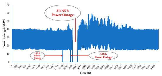 From Figure 15, it is clear that in the event of a grid outage, the NGPG able to restore the PSS thereby provides continuous power supply to REU. The indicators for resilience and the techno-economic and environmental feasibility of PSS configuration are presented in Table 7.