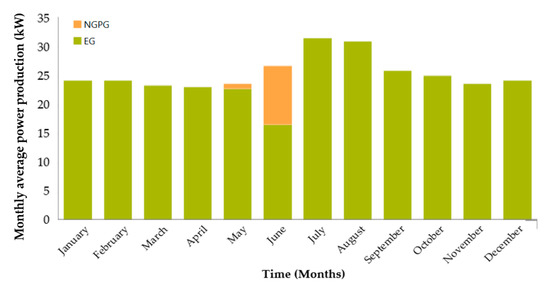In Figure 15, the power produced by the NGPG and along with the power purchased from the EG, is shown.