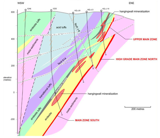 The geological section of the deposit of Kuriskova is shown in Figure 2.