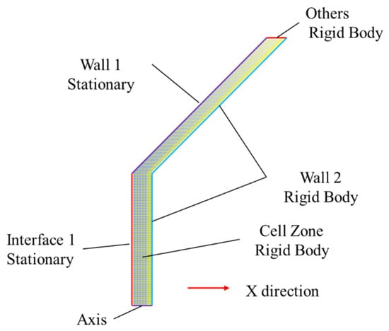 In this paper, the moving mesh method is applied to predict the flow behaviors of the check valve, which is obtained based on the mesh generation and disappearance technology. Figure 5 shows the moving mesh boundary conditions for the CFD model. The valve spool was regarded as a rigid body that can move freely in the x direction. The interface boundary of the moving grid flow region was set as the static boundary.