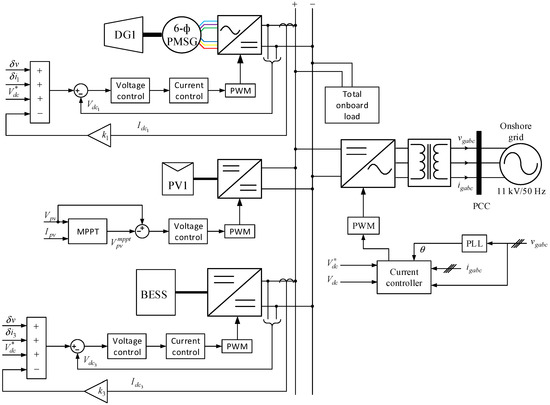 In this paper, multiple generators are considered; each generator has its own local current and voltage regulator. Since, the PV system and BESS have a simple primary control structure; their control is not described further in this paper. Furthermore, grid-connected converter control is also not presented, as it can be found in many other researches [45,46]. However, the primary control of the six-phase propulsion system is complex and discussed in detail.