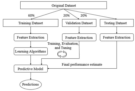Random forests, also known as random decision forests, are a highly utilized ensemble training method. It is commonly applied for both classification and regression and functions by building an aggregation of decision trees at training time and outputting the class that is the mode of the classes (classification) or mean prediction (regression) of the individual trees’ leverage [50]. Ensemble methods use multiple learning models to gain better predictive results. In the case of a random forest, the model creates an entire forest of random uncorrelated decision trees to arrive at the best possible answer. Random forest aims to overcome the correlation issue by picking only a subsample of the feature space at each split. Fundamentally, it aims to decorrelate the trees and cut the trees by setting stopping criteria for node splits. The random forest algorithm offers an excellent accuracy among current algorithms, and runs efficiently on large datasets. It can manipulate thousands of input variables without variable deletion. It creates an inner straight estimate of the generalization error as the forest building progresses [51].