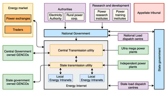 Persisting challenges, evolutions in energy technologies, and large penetration of information and communication technologies (ICTs) are influencing transformation in electricity systems. Integration of distributed renewable energy systems (RES) with traditional electricity system with the support of advanced electronic devices is an example of such transformation []. ICT can facilitate formation of local energy sharing networks coupled with RES known as microgrids, and its interconnected network structure to share electricity between microgrids. Energy consumers without RES are now enabled to hire their solar company [] or license contractors to setup household RES through options like buy, lease, or loan. Policy frameworks such as open access to electricity distribution infrastructure provides platform for RES owners to participate in the local electricity markets. It is quite evident from the recent technological advancements and the literature that energy systems of the future would function more like an internet. Such a system can provide vast opportunities for energy end-consumers to produce, consume, sell, and store energy depending on their energy utilization practices. An energy system facilitating all such transactions would function like an Information Internet and is called an Energy Internet []. The Energy Internet is visualized as a system which can lead to complete transformation of the electricity system [].