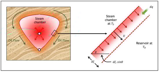 Calculation of dq at the steam chamber interface. Adapted from Butler [].