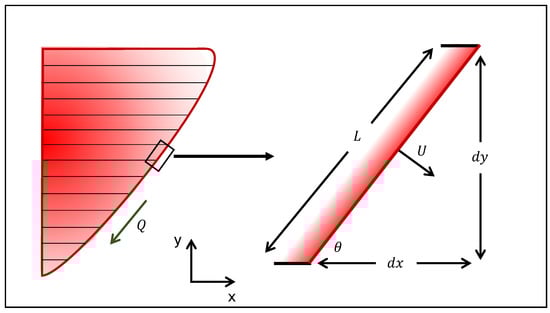 To describe the solvent concentration, Rabiei [] applied Fick’s law in the x-direction in a small element of the interface, as shown in Figure 6. The result was