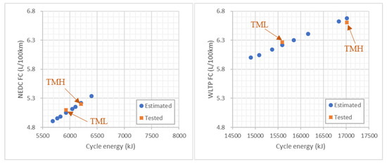 In the case of the vehicles used in this study, the test mass was increased by 18–74 kg for the minimum option and by 213–227 kg for the maximum option with respect to the test mass in the existing regulation, as shown in Table 7.
