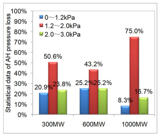 As shown in Figure 2, only a small number of units can control the AH resistance less than 1.2 kPa. Over 20% units have large AH resistance over 2.0 kPa, which means serious AH plugging problems. The trend is same with Figure 1. In the small units with load peaking function, the plugging problem is worse.