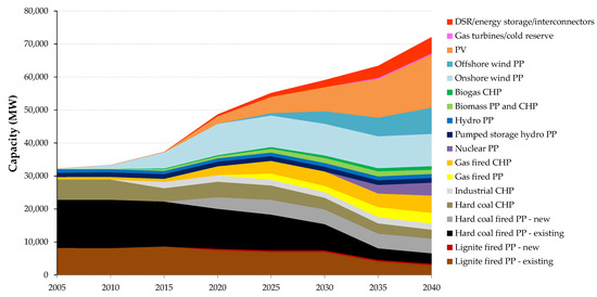 Installed capacity in Poland in the period 2005–2040 [42].