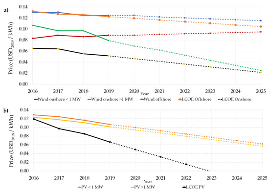 Table 11 shows the values of LCOE [45], the RES auction reference prices for 2016–2018 and Pearson correlation coefficients.