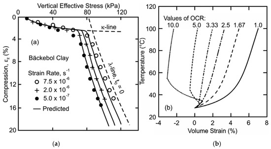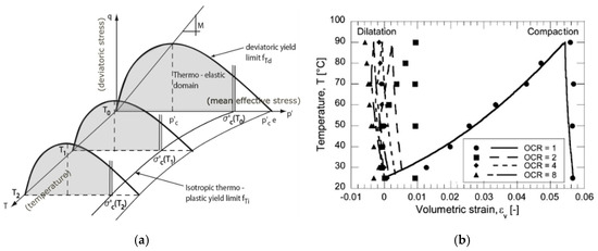 - Robinet, J.-C.; Rahbaoui, A.; Plas, F.; Lebon, P. A constitutive thermomechanical model for saturated clays. Eng. Geol. 1996, 41, 145–169. [Google Scholar] [CrossRef]