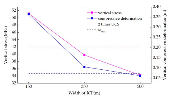 Variation law of vertical stress distribution and compressive deformation amount of ICPs with different widths.