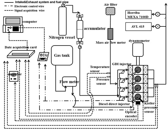 The schematic of the experimental setup in this study is shown in Figure 1. The engine specifications are given in Table 1.