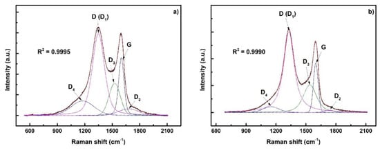 Table 4), using the following formula, which is suitable for disordered carbon materials [