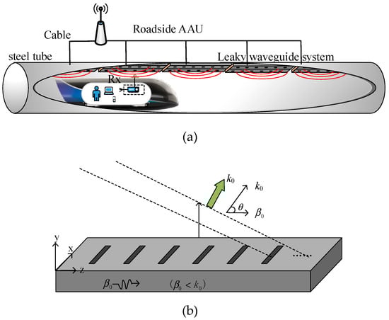 The leaky waveguide system: (a) a schema; (b) the radio propagation direction.