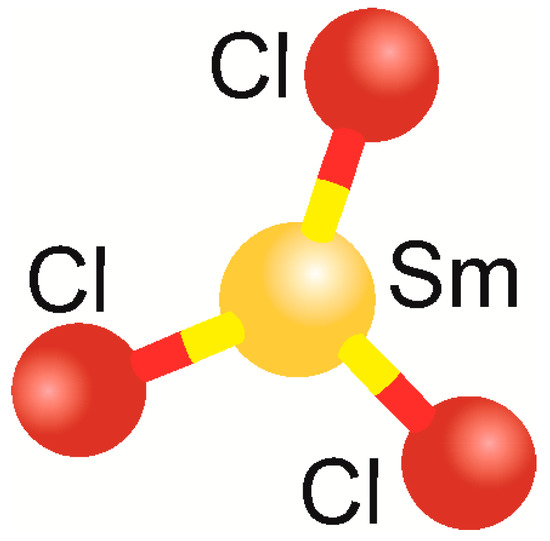 Samarium (III) chloride (Figure 4) was used as guest component [24]. This material, applied in the synthesis of Sm-organic compounds, demonstrates paramagnetic properties on a nanoscale level. Thus, it is sensitive to external fields with the desired magnetic properties.